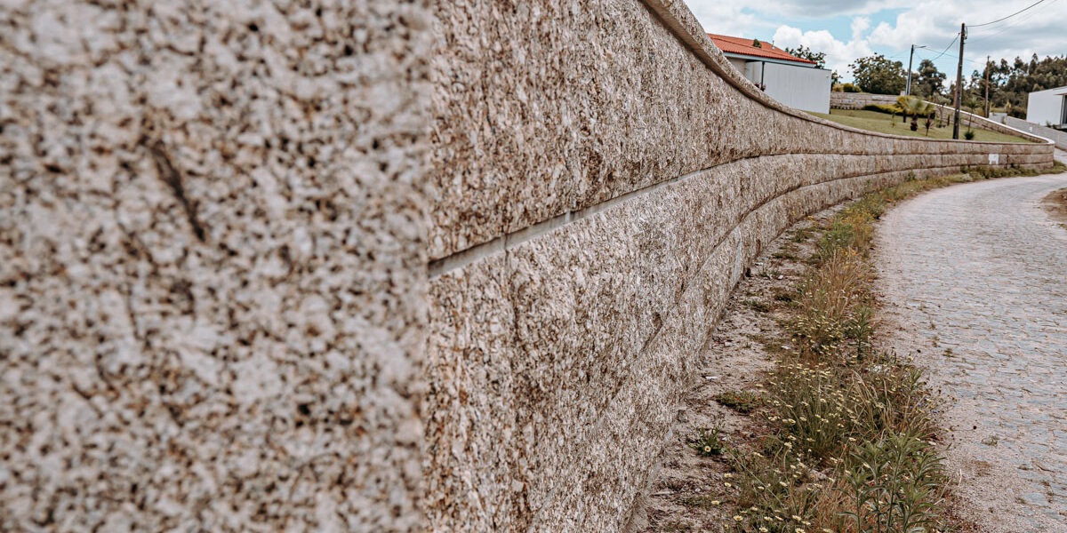 Juste un exemple de murs construits avec du noir extrait de notre carrière Anissó, transformé par nos employés et posé pierre sur pierre par notre équipe de construction civile…